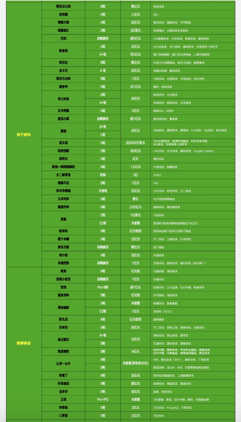 同时可以看到,在食品饮料赛道的融资过亿项目中,线下餐饮则以数量取胜,过亿项目达到33起。