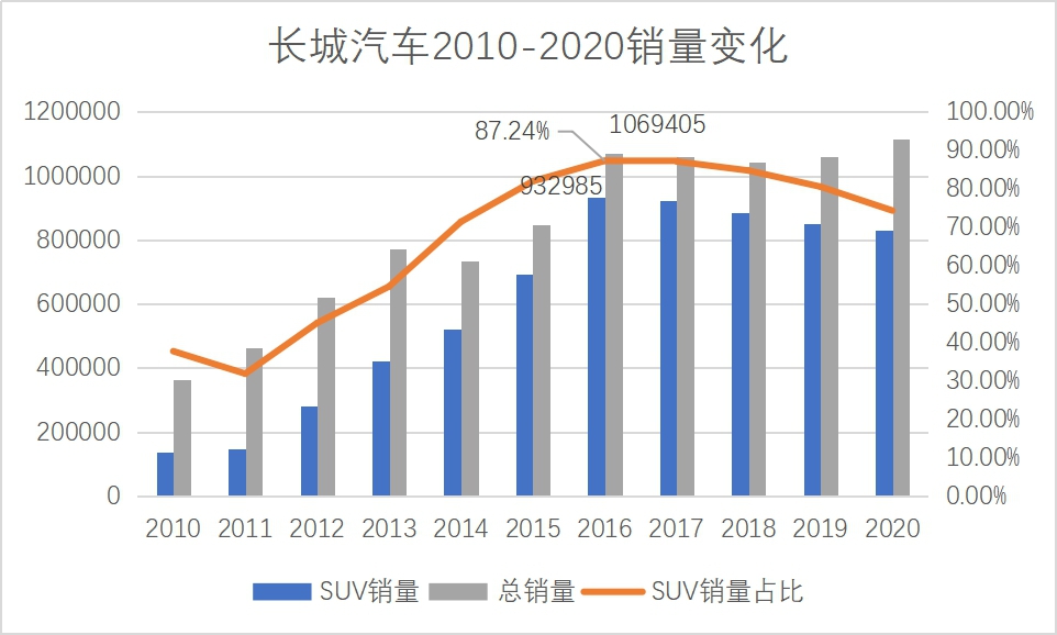 长城作为国内一线自主品牌之一,凭借SUV打下了大半个江山。
