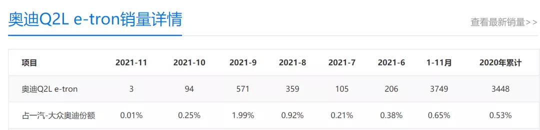 然而人类的悲喜并不相同,宝马iX3今年11月份单月销量突破了3000台,但今年1-11月的月均销量仍不到2000台。奔驰EQC 1-11月均销量不到500台,年尾新上的EQA、EQB分别卖了171和232台。至于奥迪,不仅11月份e-tron的销量只有区区92台,曾被寄予走量厚望的Q2 e-tron,11月甚至只卖出了3台。