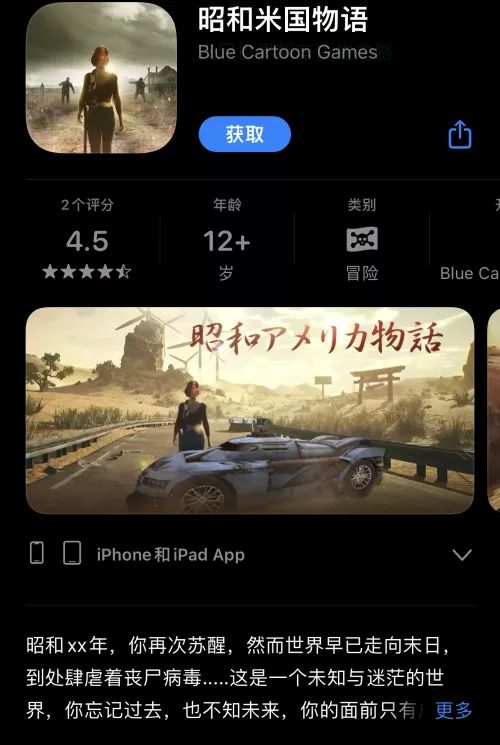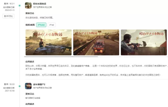 1月13日,一款名为《昭和米国物语》的游戏在苹果App Store上架,其实所谓的上架不如说直接改了游戏版本。根据七麦数据显示,这款名为《昭和米国物语》的制作商App store显示为Blue Cartoon Games,而该游戏在一天之前还叫做《战车撞僵尸2》。