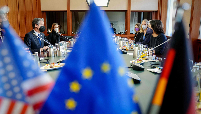 美国国务卿布林肯周四则在柏林与英、法、德三国的官员举行了会面,强调了反对俄罗斯侵略的重要性,称俄侵略不仅对乌克兰构成威胁,而且还对基于规则的国际原则构成了威胁。