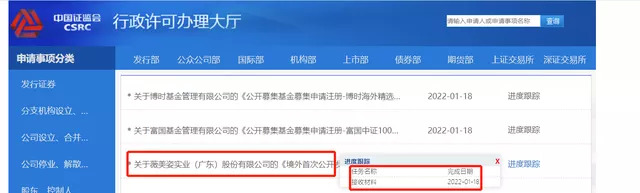 1月18日,证监会披露了薇美姿实业(广东)股份有限公司提交的《股份有限公司境外首次公开发行股份(包括普通股、优先股等各类股票及股票派生的形式)审批》材料。一旦获得受理,就意味着薇美姿或很快就可以在港交所递交招股书。
