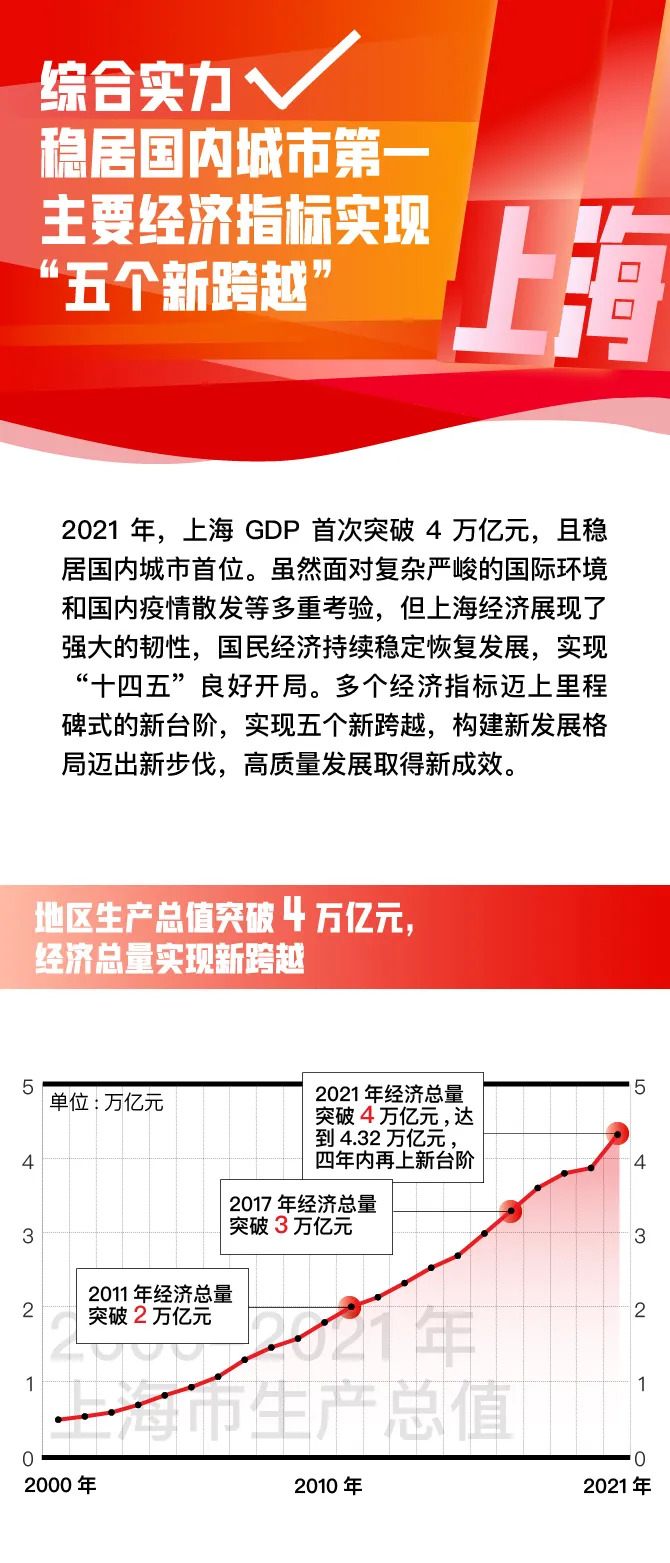 过去一年,上海的国民经济和社会发展取得了哪些成果?市统计局和国家统计局上海调查总队公布了2021年上海市国民经济运行情况。根据地区生产总值统一核算结果,2021年上海市地区生产总值43214.85亿元,按可比价格计算,比上年增长8.1%,两年平均增长4.8%。分产业看,第一产业增加值99.97亿元,第二产业增加值11449.32亿元,第三产业增加值31665.56亿元。第三产业增加值占全市生产总值的比重为73.3%。全年全市居民人均可支配收入78027元。总的来看,2021年上海经济持续稳定恢复,主要指标实现预期目标。