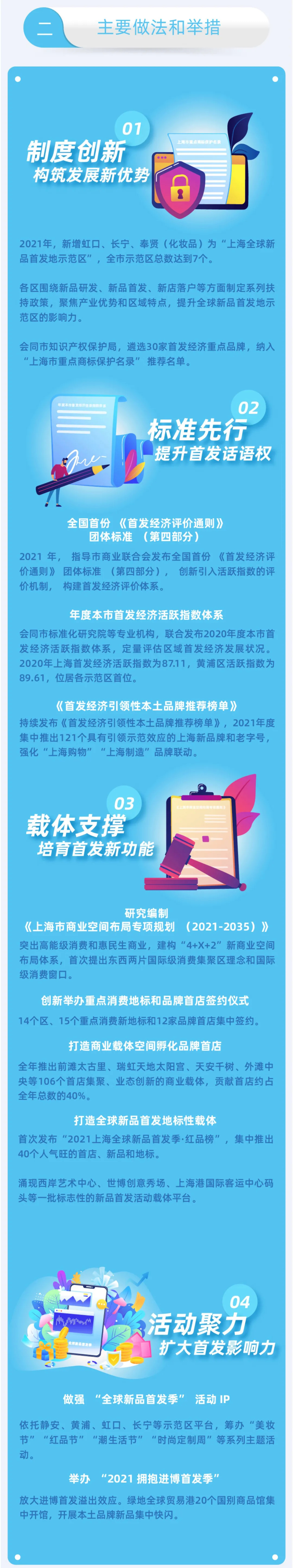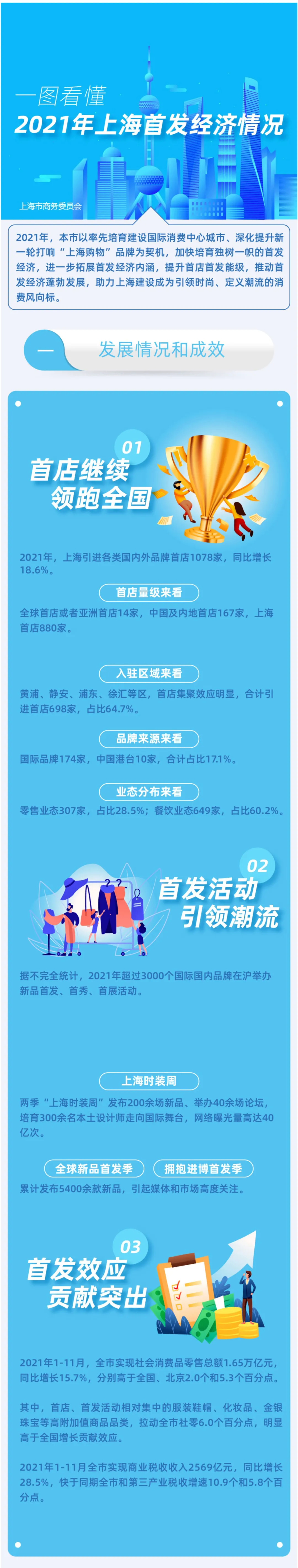 市商务委介绍,上海加快培育独树一帜的“首发经济”,2021年,上海引进各类国内外品牌首店1078家,同比增长18.6%,首店继续领跑全国、首发活动引领潮流、首发效应贡献突出;2021年,全市“全球新品首发地示范区”总数达到7个……详见↓