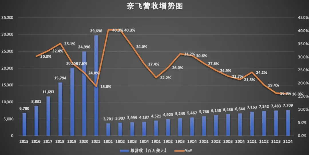 订阅用户的增长,也带动了奈飞总营收的增长,但增速放缓已成事实。