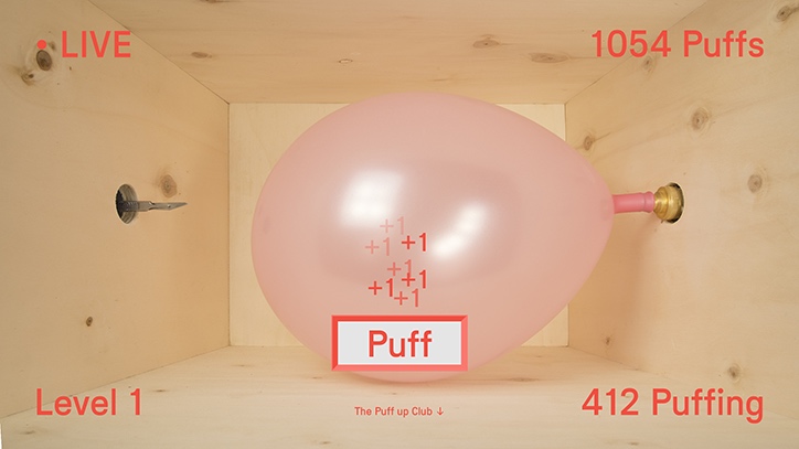 这种让人莫名上瘾的直播竟然还不止一关,而且设置得一关比一关难,需要越来越多人戳屏幕才能将气球吹到爆。