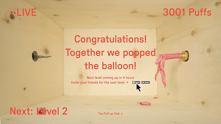 粗略算了一下,为了吹爆这17个气球,超过17万人坐在屏幕前戳了一共4000多万次。其中最凶猛的鼠标手出现在第9个气球,那次,平均每人戳了685下……