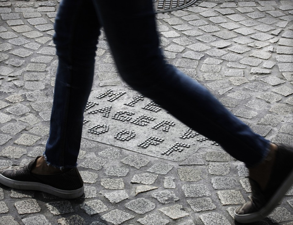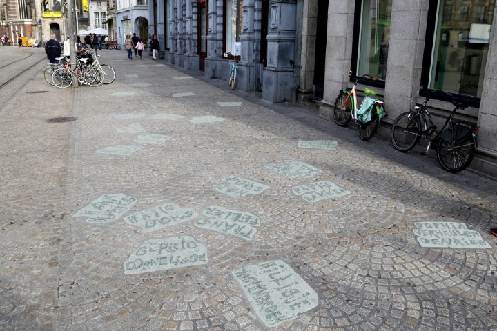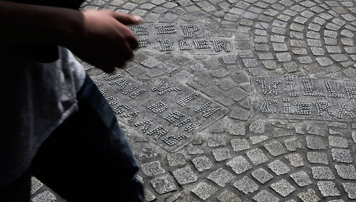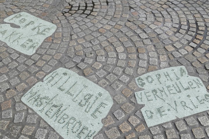 ▼9个月时间后,他们把这些石块名字印在了Dam Square的地面上