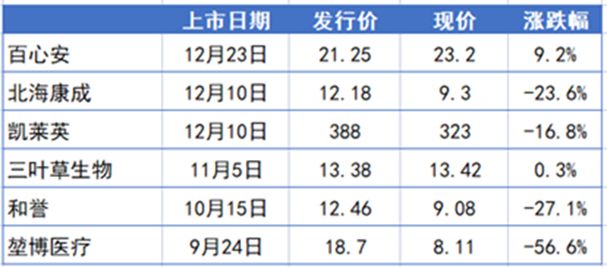 涨停的均瑶健康主营产品是乳酸饮料,投资平台上颇为活跃的国投中鲁主要从事浓缩果蔬汁,睿智医药生产益生元……牙膏酸奶卖得不亦乐乎,生物医药新股在资本市场却备受冷落。在2021年上市首日破发的14只新股中,生物医药行业占了6只,几乎一半,其中破发幅度最大的一家跌幅高达56.6%。