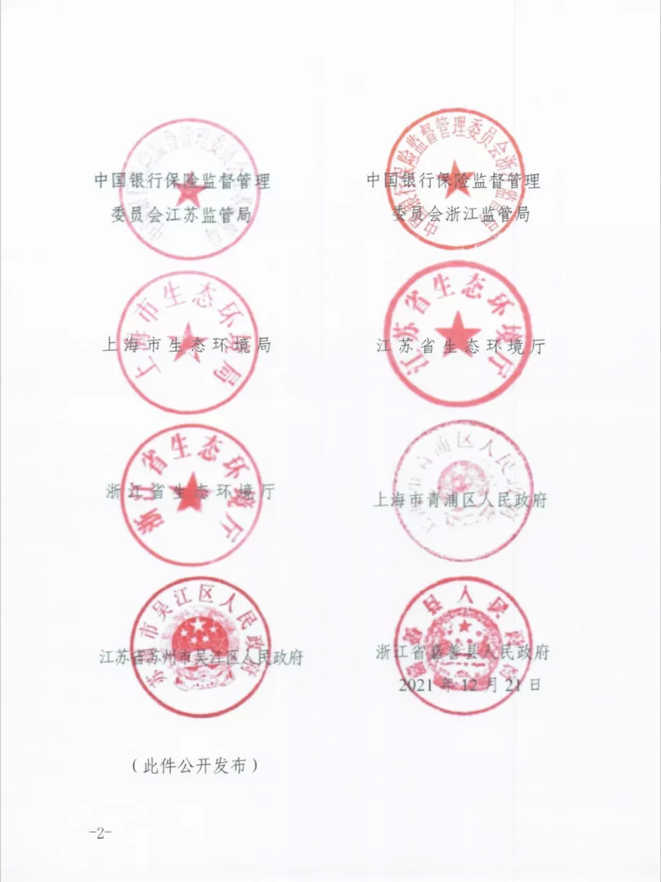 2020年8月26日,在首届示范区开发者大会上,执委会和两区一县政府与中国太保共同签署了《长三角生态绿色一体化发展示范区绿色保险战略合作协议》。出台《实施意见》是贯彻示范区“金融16条”,推进《合作协议》落实的有力举措。