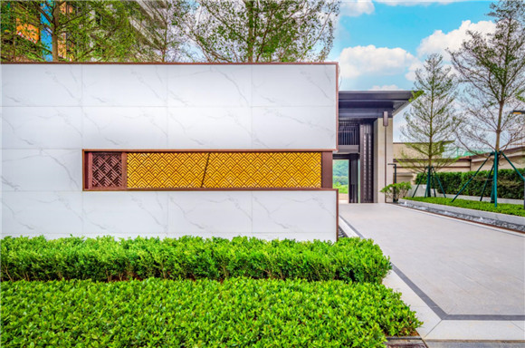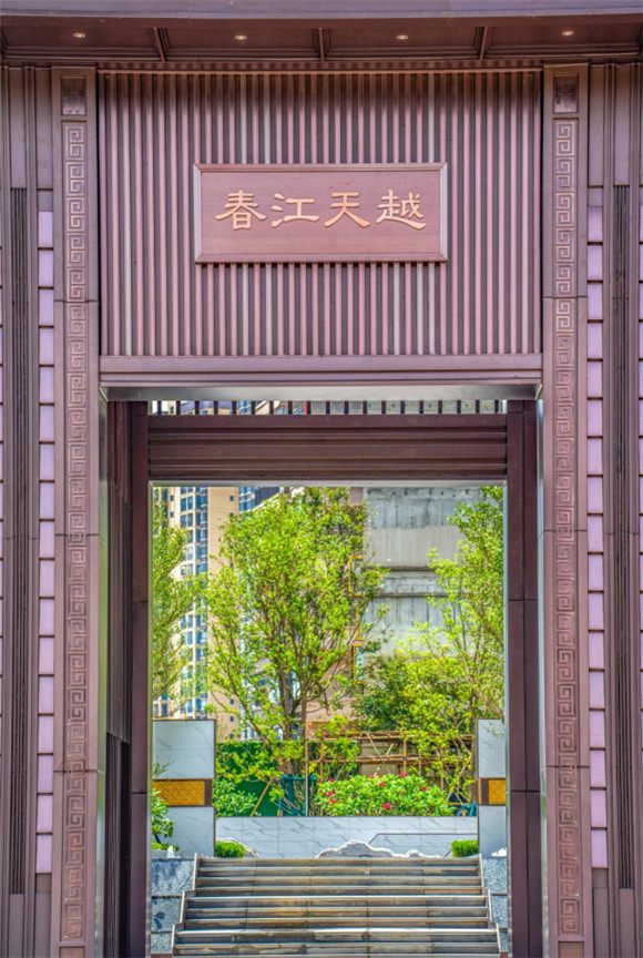 仪式感归家:打造新中式入户大门,迎接业主归家,给予业主尊崇仪式感;进入社区,便是一路水景林荫,不闻外界喧嚣,只有生活的宁静。