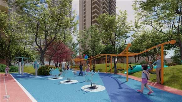 超2000㎡儿童乐园:针对0~12岁儿童规划了不同年龄段的游戏场所,配备学步墙、涂鸦板、滑滑梯、儿童跑道赛道、起伏的小山坡等色彩明快的游玩设施,让孩子充分享受在大自然中游戏、结识更多新朋友,健康快乐成长。