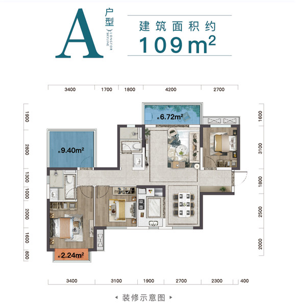 建面约109㎡宽境4房缔造更灵活、实用的空间,高拓展率增加了实用面积,约9.4㎡阳台,改造后可做瑜伽房、书房、孩子兴趣室等,空间利用率可见一斑!而通风采光俱佳的客厅设计,无论是三代人的日常生活,或是节假日亲友来访,均能轻松安排。