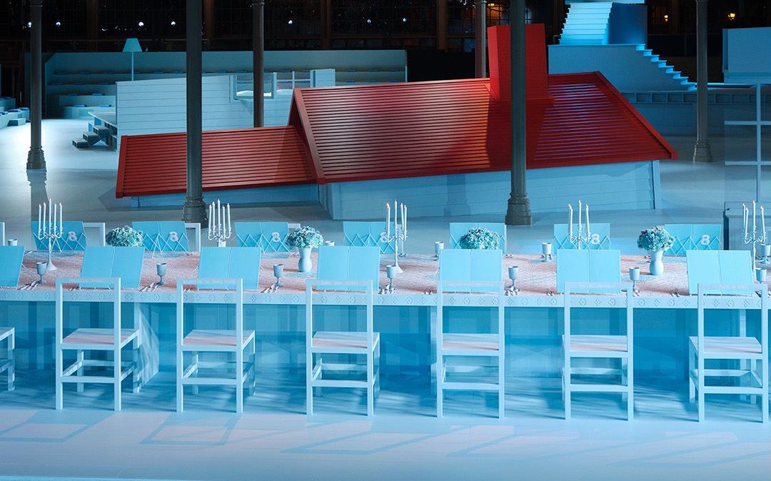 事实上,在经历了这些年的变化后,人们已经很难再用简单的“为奢侈品牌注入街头时尚”的评论去形容Virgil Abloh为路易威登做的设计。2018年,Virgil Abloh将路易威登首秀的秀场布置成为通往天空的彩虹大道,而在如今,这场告别秀用大面积的浅蓝色作为主调,构建出已经跨越云端的梦幻意境。