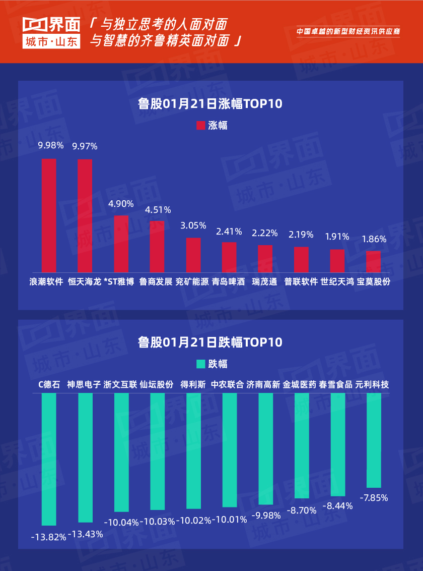 1月21日,山东64股上涨,8股持平,191股下跌。