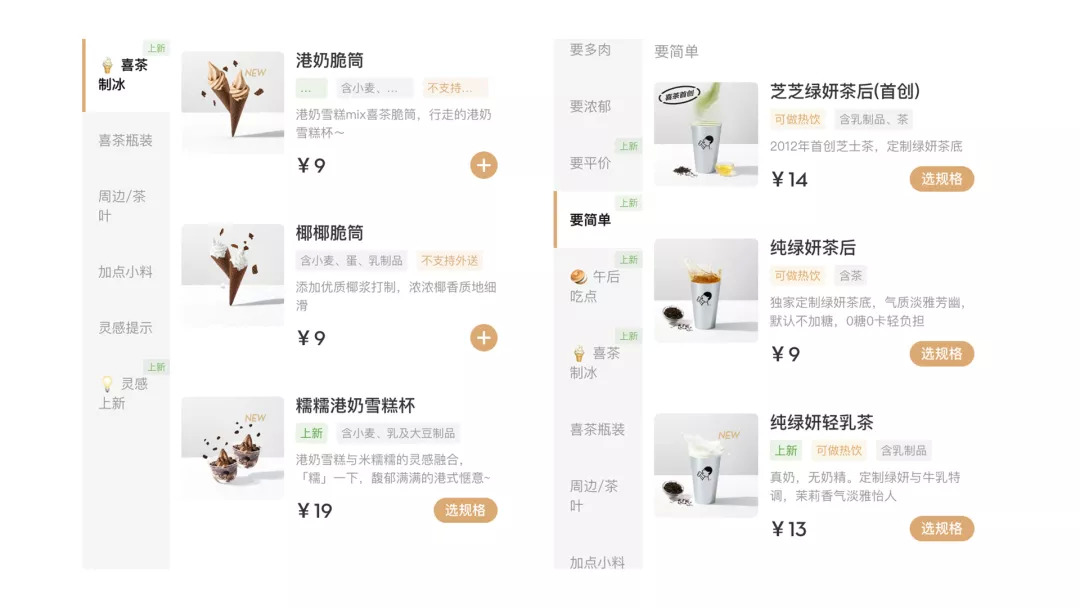 喜茶通过产品推新的方式,上架了“要简单”、“要平价”、“喜茶制冰”、“午后甜点”四个新系列。与以往动辄二三十的价格相比,新系列的价格亲民不少。喜茶方面在最新声明中回应称:“降价确实存在,其中纯茶类降价3至5元、5款水果降价2至3元、芝士降1元。”