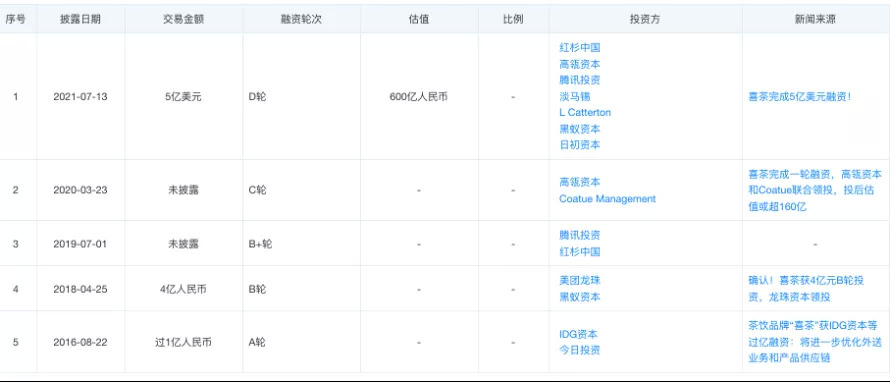 D轮融资之后,喜茶的投后估值也从上一轮的160亿元暴涨至600亿元,背后的资本也都是国内外顶尖资本,如高瓴、腾讯投资、红杉资本,淡马锡以及L Catterton和日初资本等。与此同时,关于喜茶赴港上市的传闻也一直不断。尽管喜茶方面一直声称,无上市计划,但这并不代表未来永远不上市。