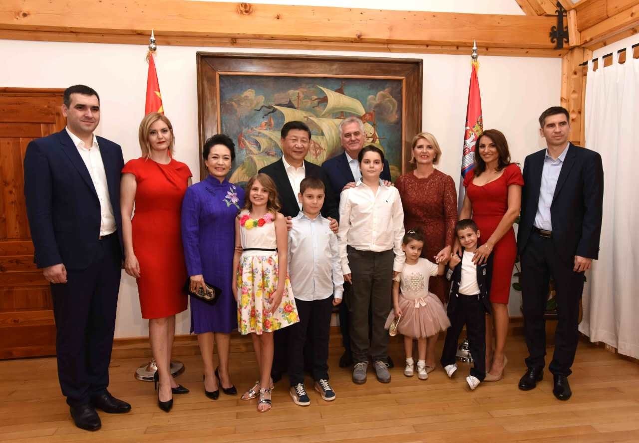 △当地时间6月17日,国家主席习近平同塞尔维亚总统尼科利奇在贝尔格莱德举行会晤。这是习近平和夫人彭丽媛同尼科利奇夫妇及家人在和平别墅合影。