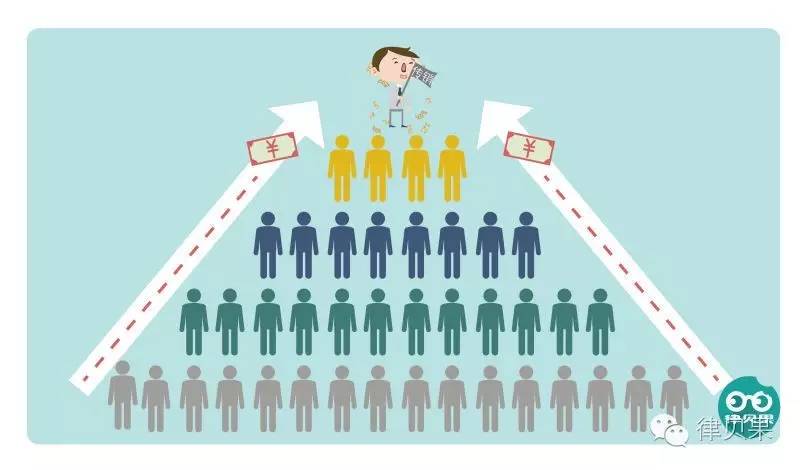 再往白了说就是:上级作为金字塔的上层,拉了下级来入会,下级再拉更下一级入会,每一级在拉下级入会的时候,都会收取下级的会费,并将其中的全部或者一部分上交上级。