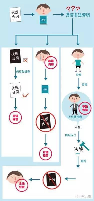 3、如果已经发现自己的行为涉嫌非法传销且无法自拔,则应当通过法律途径终止非法传销的行为(合同),以确保该微商自身的经营行为是合法的。