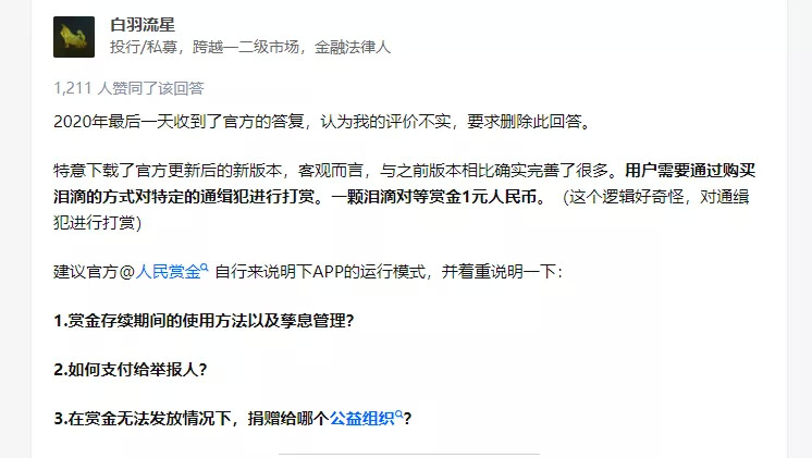 根据网友们的实践,网站里发布的通缉令也有真有假:有时候一个嫌疑人会客串两张通缉令,有时候嫌疑人哪怕已经被判刑了,却依旧被挂在页面接受“打赏”,因此有网友质疑最后“众筹”到的钱全部进了网站老板的口袋。
