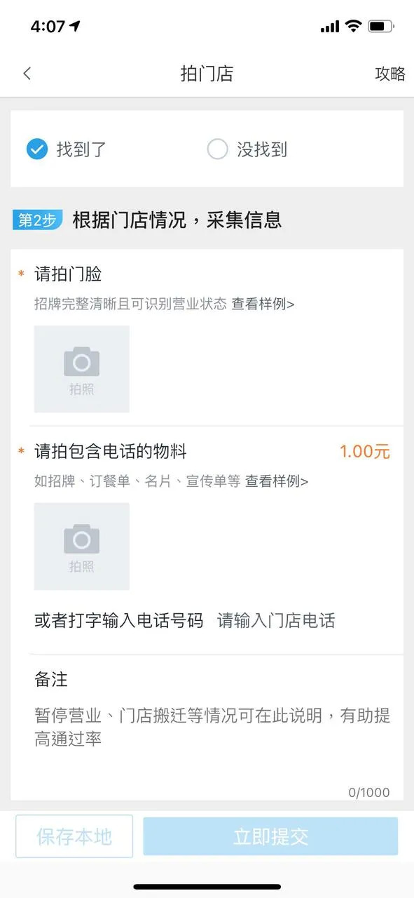 实际情况是,你得拍摄完门脸,再拍店铺电话,等待美团的工作人员进行人工核验(比如他们会拨打照片上提供的电话,问问是不是店主本人),才能拿到完整的佣金,这个过程大概3-5天。否则你就可能会因为审核失败,而只能拿到几毛钱的部分佣金甚至零佣金。