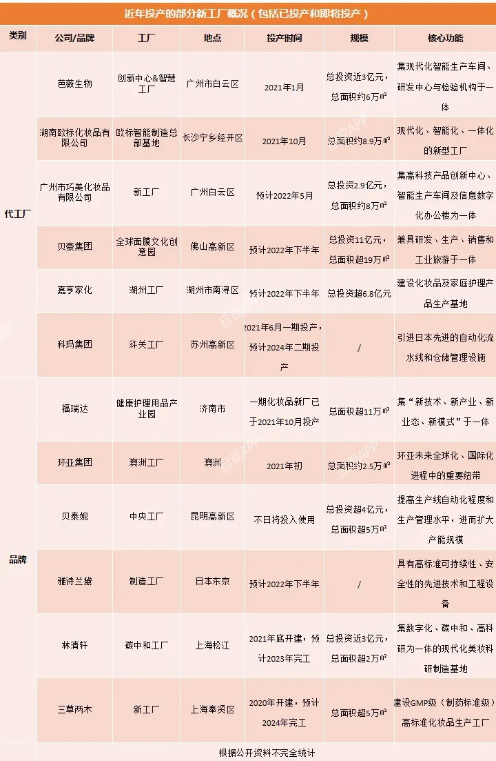 近一两年,一大批美妆新工厂已经或即将投产。