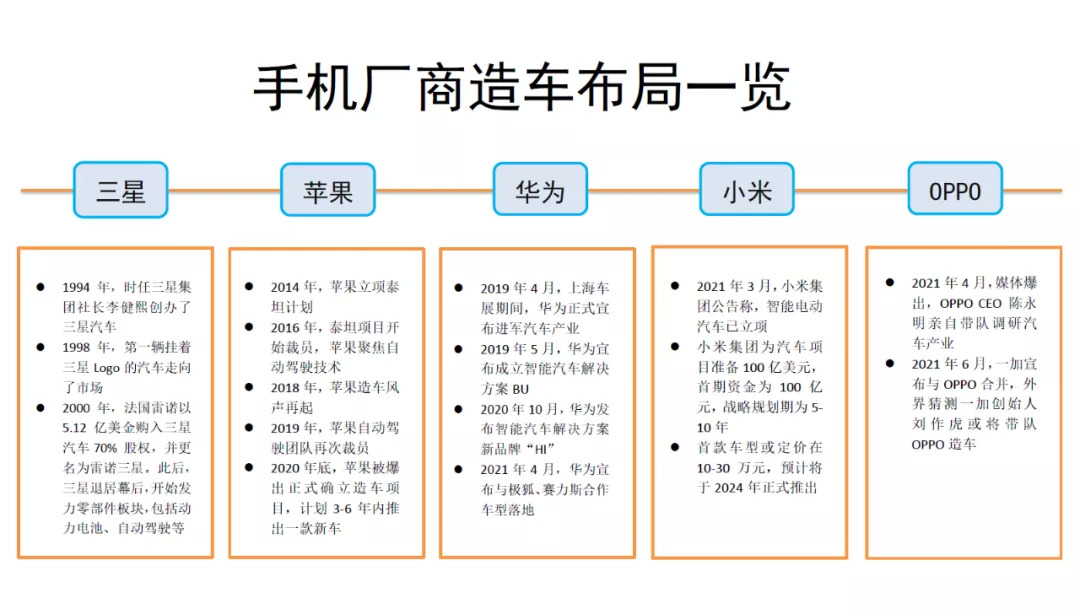当然除了与互联网公司合作,很多车企还提出过自建生态的理念。招银国际研究部分析师白毅阳曾分析称,小米公司从手机转型成智能硬件和IoT巨头,已经围绕着所有智能终端培育生态。而随着汽车的智能网联化推进,汽车进入了小米生态圈的视野。现在正处于汽车智能化浪潮的初期,智能网联汽车将成为新的流量终端,这也是小米打造智能终端闭环的初衷。