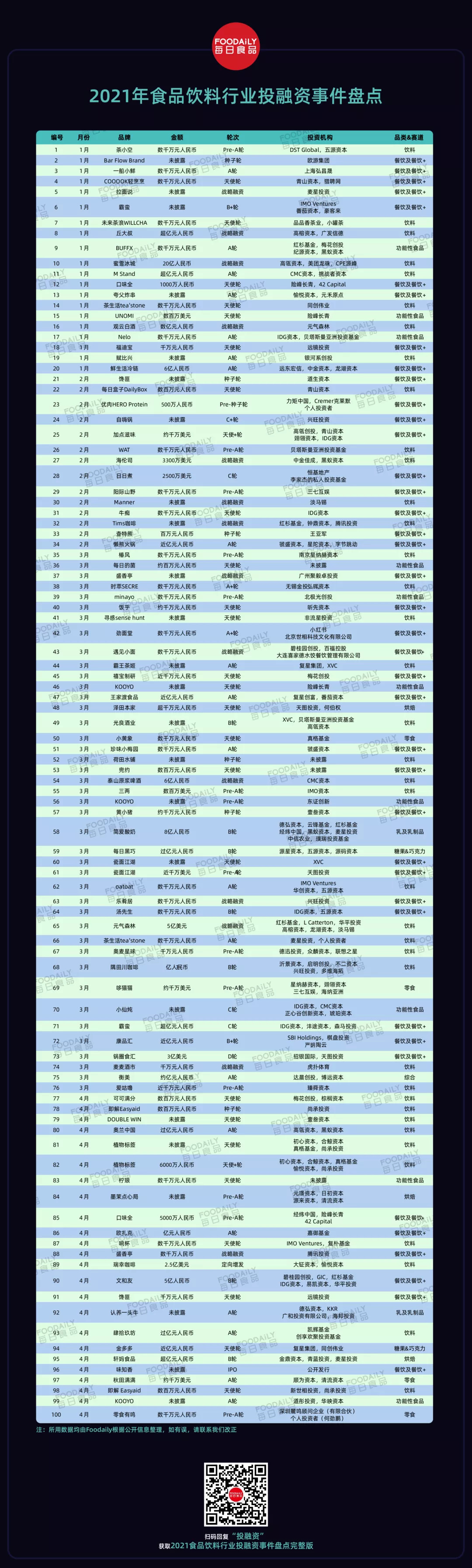 01 2021年食品饮料行业投融资事件盘点