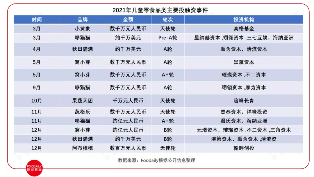 作为母婴和零食品类交叉产生的细分品类——儿童零食市场正在变成一片增速飞快的新蓝海。面向儿童群体提供营养、好吃、有趣零食的「哆猫猫」完成近亿元A+轮融资,以果蔬为核心打造儿童健康零食的「果蔬天团」获千万级人民币天使轮融资······