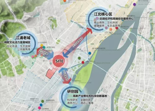 定位上,城南中心位于江北核心区、研创园、江浦老城的中心位置,承担着打通江北新区与老城的重要节点作用;同时,与江北核心区互为补充、错位发展,有效弥补江北核心区现有功能的不足,最终打造成为江北又一核心发展极。