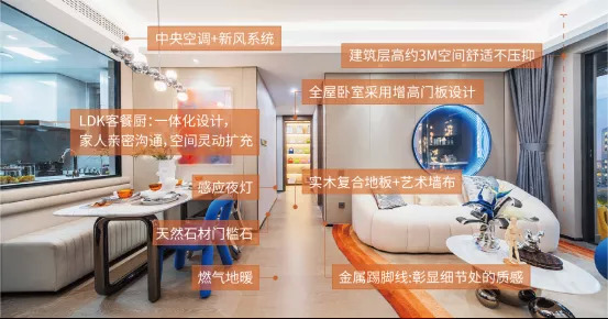 它不只是单纯的把客餐厨之间的墙面换成了移门,而是重新定义家庭公共区域的交互方式。通过开放式的客餐厨空间,让家人自由的互动交流。同时,LDK将公共区域的空间感拉到了最大,也将生活场景可能无限放大。