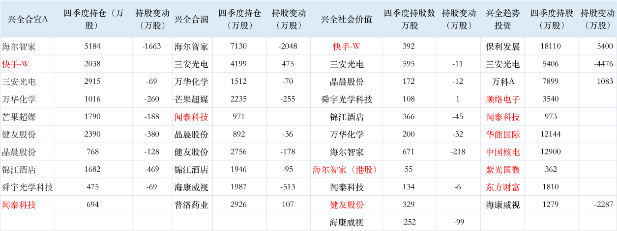 其管理的兴全社会价值也是果断将快手-W(1024.HK)买成第一大重仓股,新进港股海尔智家(6690.HK)和健友股份(603707.SH),腾讯控股((0700.HK)和信达生物((1801.HK)则消失在前十大重仓股之列。