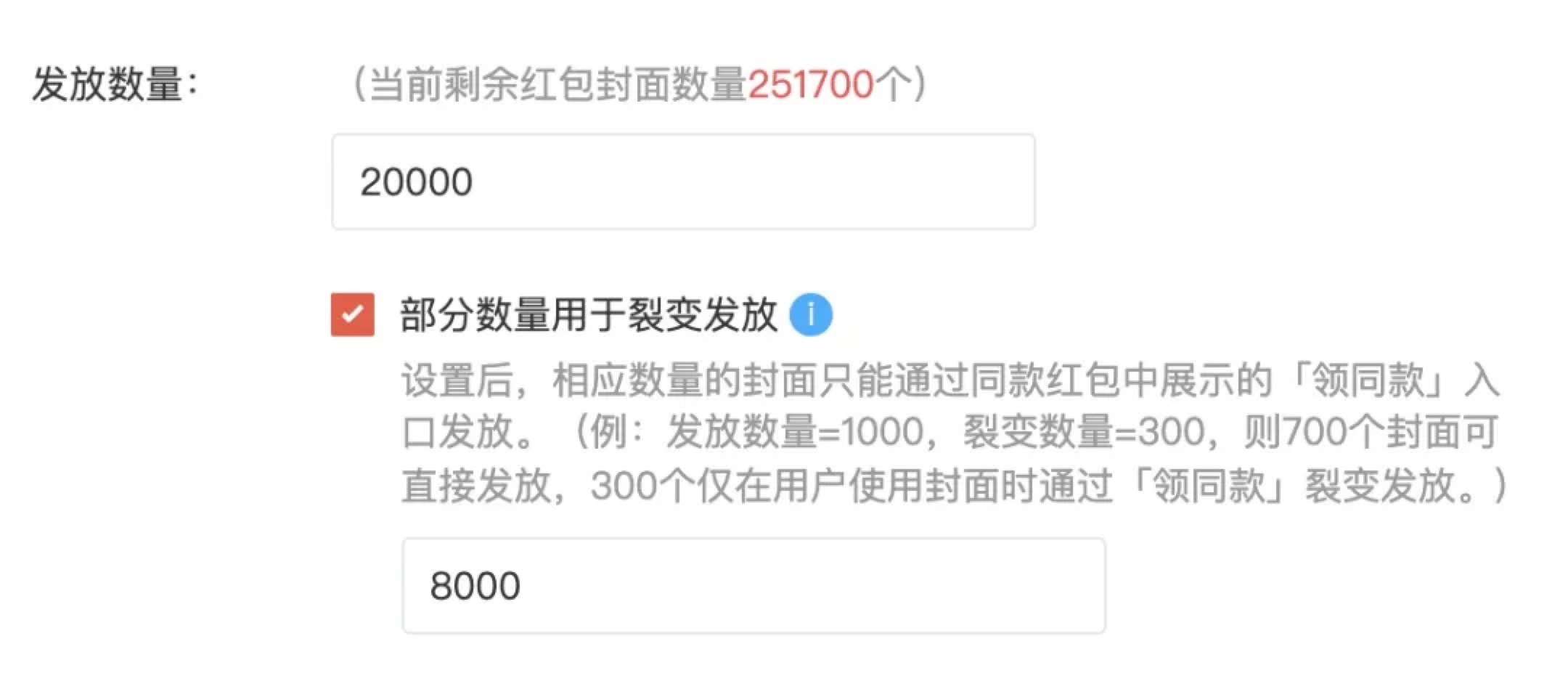 1月24日,微信官方公众号“微信派”发文介绍红包封面“裂变发放”新功能。红包封面的制作者可以在后台设置红包的发放数量、裂变发放数量。用户发放红包之后,领取的用户可以点击“领同款”按钮,直接获得同款红包封面。裂变数量消耗完,也就不再出现“领同款”入口。