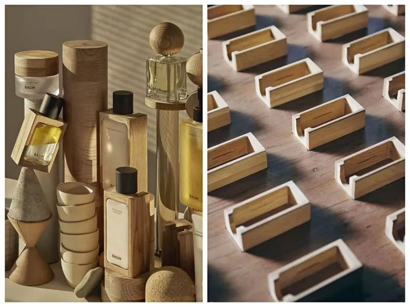 基于这一理念,BAUM产品的包装,全部来自于木制家具制造商KARIMOKU家具株式会社在生产制造环节中产生的小块废弃木料。最终的设计展示了木材独特的变化和纹理和颜色的深度。此外,本包装设计还采用了可替换的概念,以减少对环境的影响。瓶子是由生物基PET或回收玻璃制成的。据了解,BAUM品牌积极参与森林保护活动,其中包括种植橡树,这也是“BAUM forest”系列包装使用的木材。