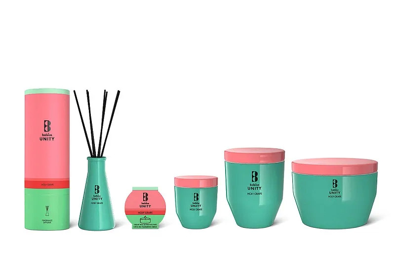 Bolsius Unity的香薰蜡烛和芦苇扩散器,采用彩色玻璃容器和纸板包装。该系列包括三种尺寸的玻璃香薰蜡烛、一个名为“Little Big fragrance Candle”的采样器和一个扩散器。该蜡烛有12种专门开发的香味,分为含有4种香味的3个芳香系列:纯净宁静,罂粟喜悦和深度自然。