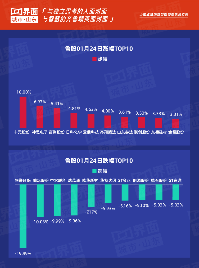 1月24日,受大盘影响,山东90只个股上涨,164只个股下跌,丰元股份领涨。