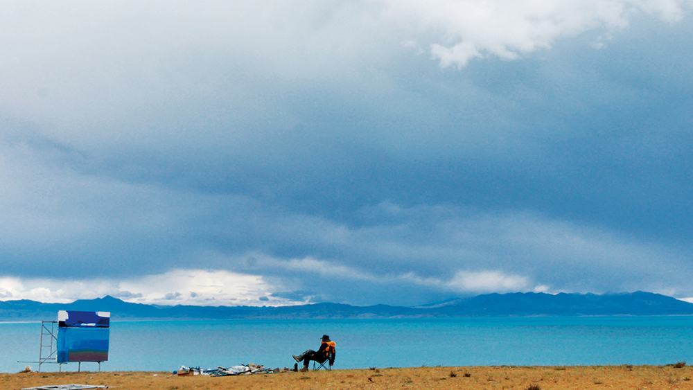 第二次去西藏,我选择在玛旁雍错待着不动。一天里,山还是那个山,湖还是那个湖,但由于光的无限变化,导致那里有一百种湖一百座山的感觉,那些不停变换的景象你根本追不上,我决定不再去追逐外在的光,而是长时间凝视。慢下来之后,人也沉了下来,逐渐找到和那里相通的点,在现场的凝视、想象和感知形成一种综合体验,绘画就成为这体验后的延伸。在玛旁雍错,我第一次离开了传统意义上的风景写生。