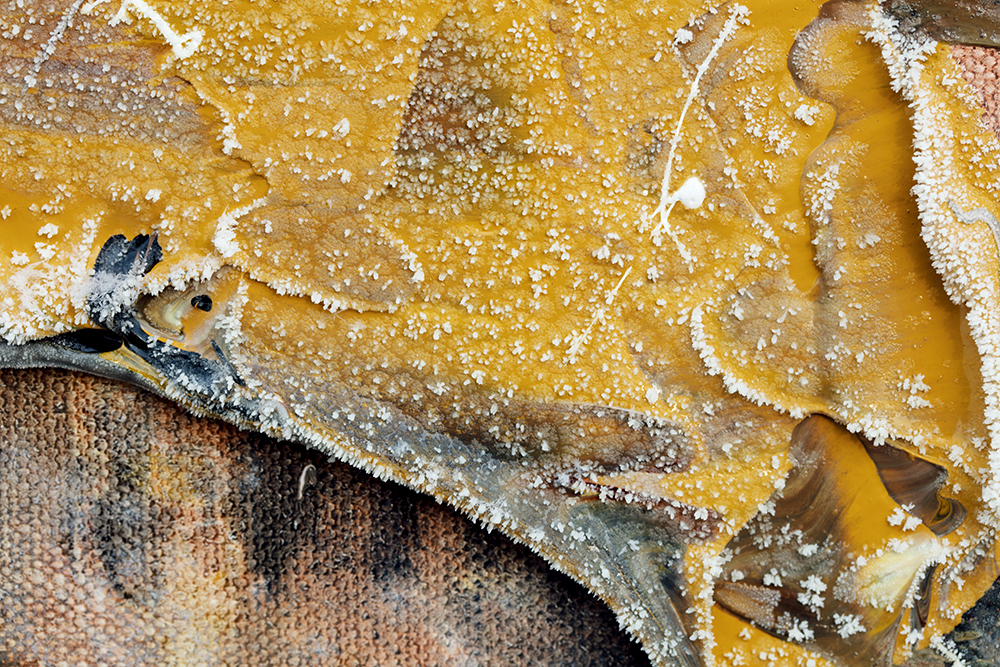 正午:我看罗布泊的这些画,有的地方画的肌理像皮肤褶皱一样,很特别,那是怎么产生的?