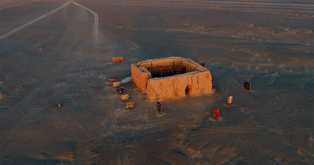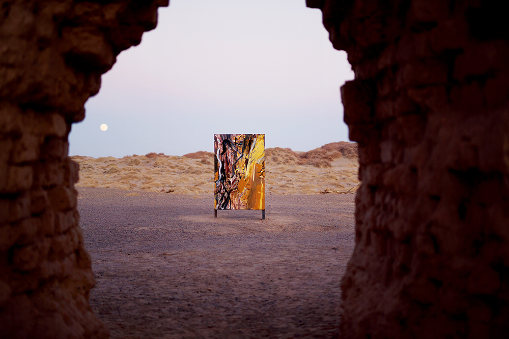 刘商英:非常偶然,我们本是去那里避风。我的工作习惯是画完作品后,要在现场拍画跟环境的关系。那天拍的时候风特别大,我们就到红城里面去避风,进去一看,我就感觉特别对,有种穿越感,瞬间产生了在那里做展览的想法,一个很酷的没有顶的“美术馆”。