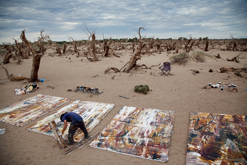 刘商英:我去过的这几个地方,阿里像一个少女,额济纳旗像战士,而罗布泊像一个巫师。起初我很兴奋于这些差异,但时间久了,会归于平静,也就是外在的差异不再起主导作用。不同的自然环境就像不同的人,你接触的人多了,就会对人性有认识。后来我意识到,我更在意一种和自然的基础性关系,越是极端的环境,这种基础性关系就越会凸显。生存成为首要目标,绘画在那里并不高高在上,甚至一点用都没有。但恰恰是这种无用,我绘画的初衷才得以显现。