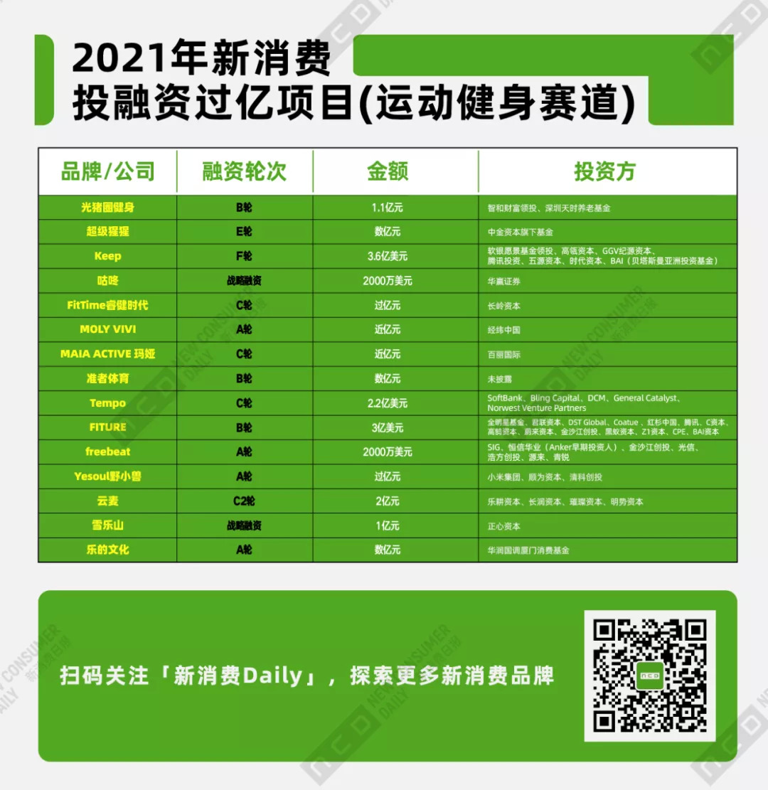 另外除未披露金额的项目外,运动健身并无百万级项目,且15轮次融资过亿,占到总轮次的57.69%,远远超出其他赛道的比例,可见,资本市场对运动健身市场的投入情绪更加热烈。