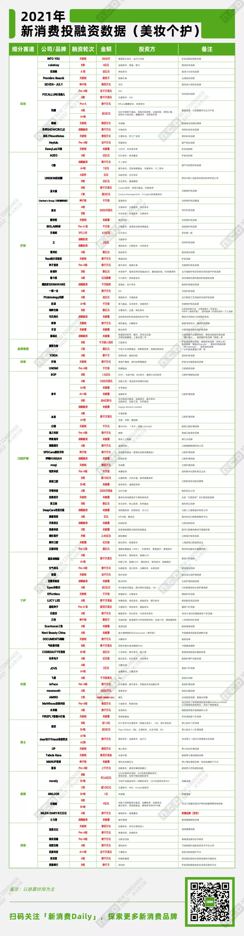 1、该融资数据由「新消费Daily」不完全统计,由于新消费涉及面较广,故可能存在统计遗漏情况;
