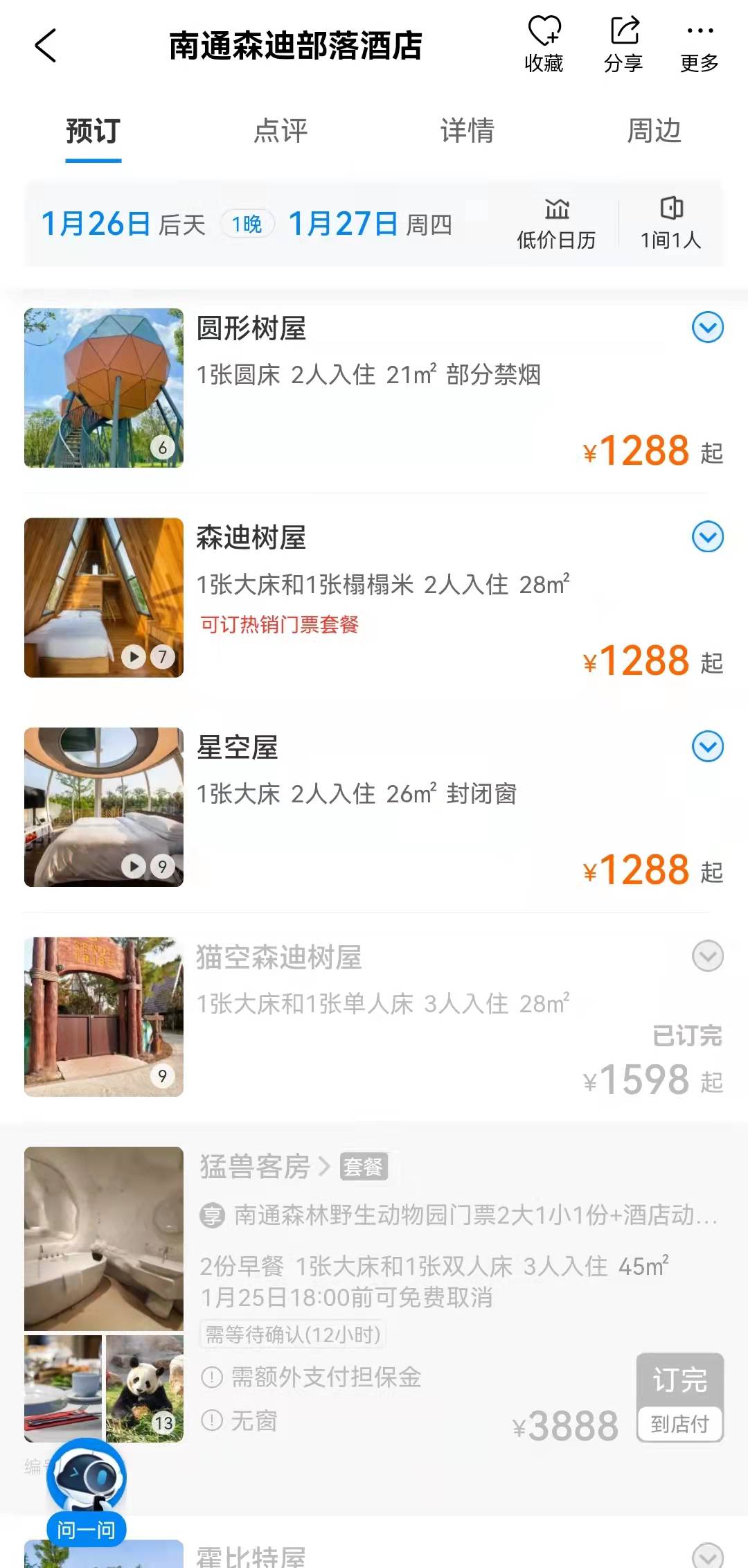 界面新闻24日查询携程平台发现,该酒店多数房型价格在1288元-1598元一晚,近期仍有空房;引起争议的“猛兽客房”价格最高,为3888元/晚,但所有日期均显示“订完”状态,无法预订。
