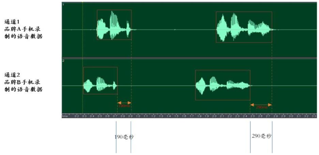 ▲不同通道录制的语音数据不对齐情况示例