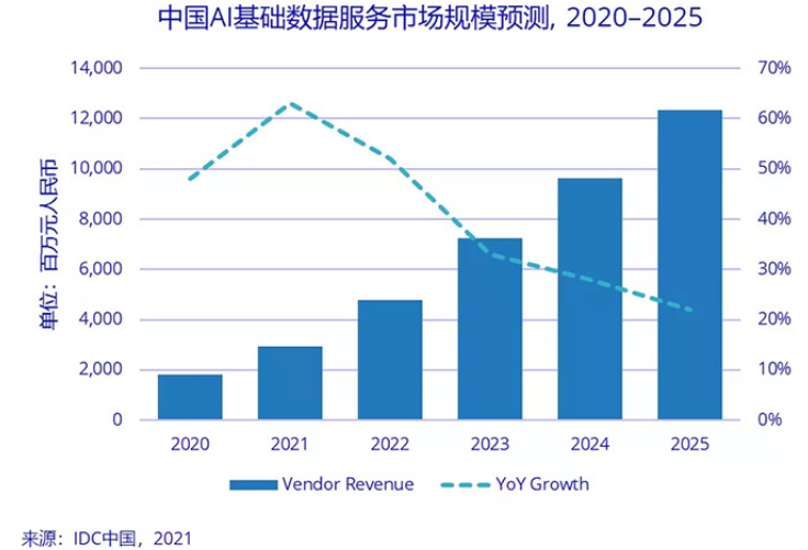 ▲2020-2025年中国AI基础数据服务市场规模预测(来源:IDC中国)