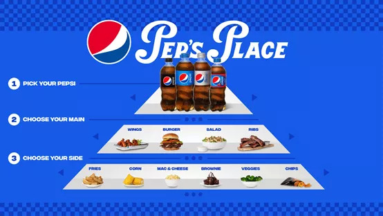 当你享用任何食物时,一杯简单的百事可乐就是完美的用餐伴侣。2021年5月3日,百事为了强调可乐在任何餐饮场景下百搭属性,推出了Pep’s Place——一家在菜单和体验上都以可乐为先的快速饮料餐厅。颠覆了传统的点餐流程,消费者最先选择他们想要的百事饮料,在根据该饮料的提示下精选食品,以增强整体用餐体验。
