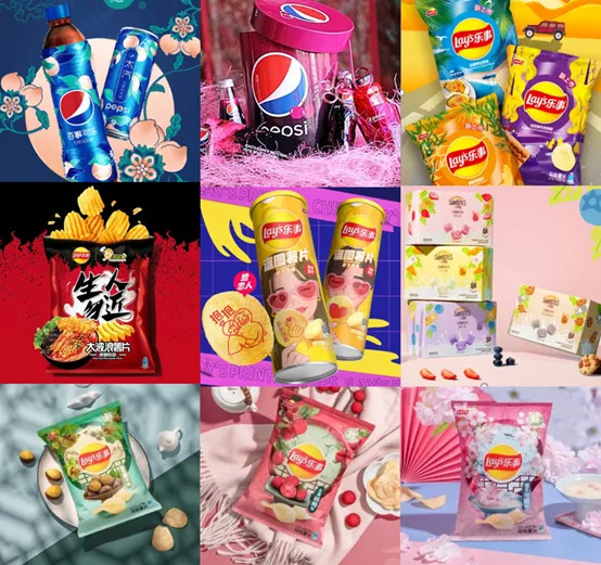 2021年,百事在中国不断推新,百事可乐相继推出可乐野樱桃风味和百事可乐太汽系列白桃乌龙口味;同时引入“bubly微笑趣泡”强势入局无糖气泡水领域;乐事推出春日限定的醇香栗子、樱花米酿与生津杨梅三种口味以及夏日烧烤味系列,联名好欢螺推出螺蛳粉薯片,上新表情包薯片…