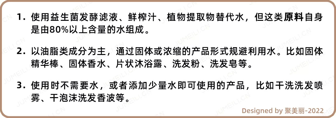 现在,不论是独立初创的小众品牌,还是国际知名品牌,都提倡“节水”理念。在节水行动上,除了提倡”无水“概念之外,我们也看到不少品牌通过配方研究,或开发“黑科技”,以达在产品制造或产品使用过程中减少用水的目的。可以说,“节水”正在从一句单纯的口号,逐渐发展落地为具有高技术含量的产品。