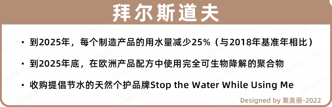 此外,欧莱雅、拜尔斯道夫、爱茉莉太平洋等国际集团,也通过改良工厂设备、参与公益活动等方式,一方面号召行业加入节水行动,另一方面也在持续探索降低产品和供应链中用水的方式,进一步推广可持续发展的价值观。